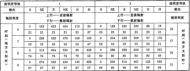 表D.0.1-3 北緯30°透過標(biāo)準(zhǔn)窗玻璃的太陽輻射照度(W/m2)